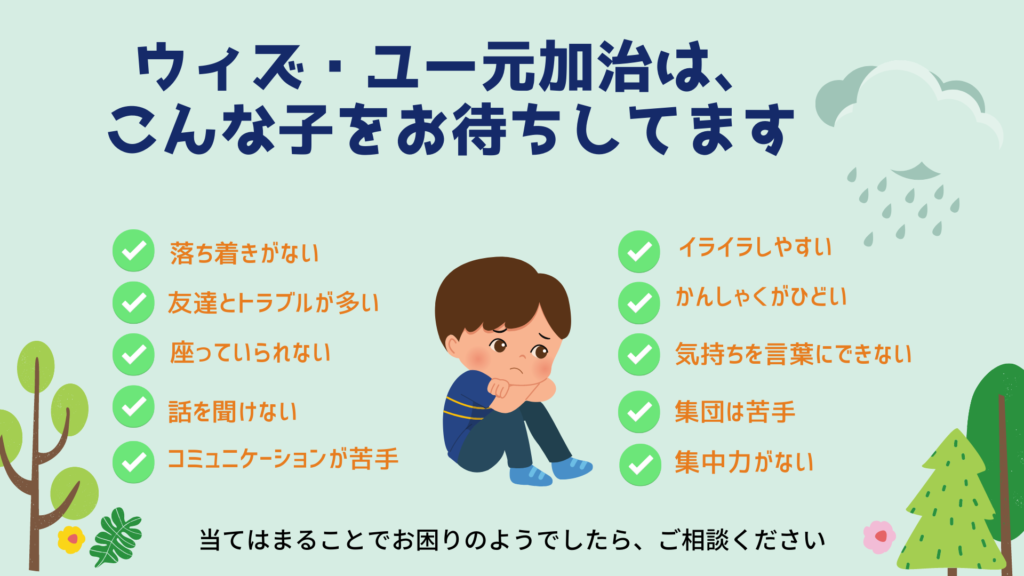 ※ウィズ・ユー元加治では、支援学校・支援級・普通級に所属するご利用者様がいらっしゃいます。