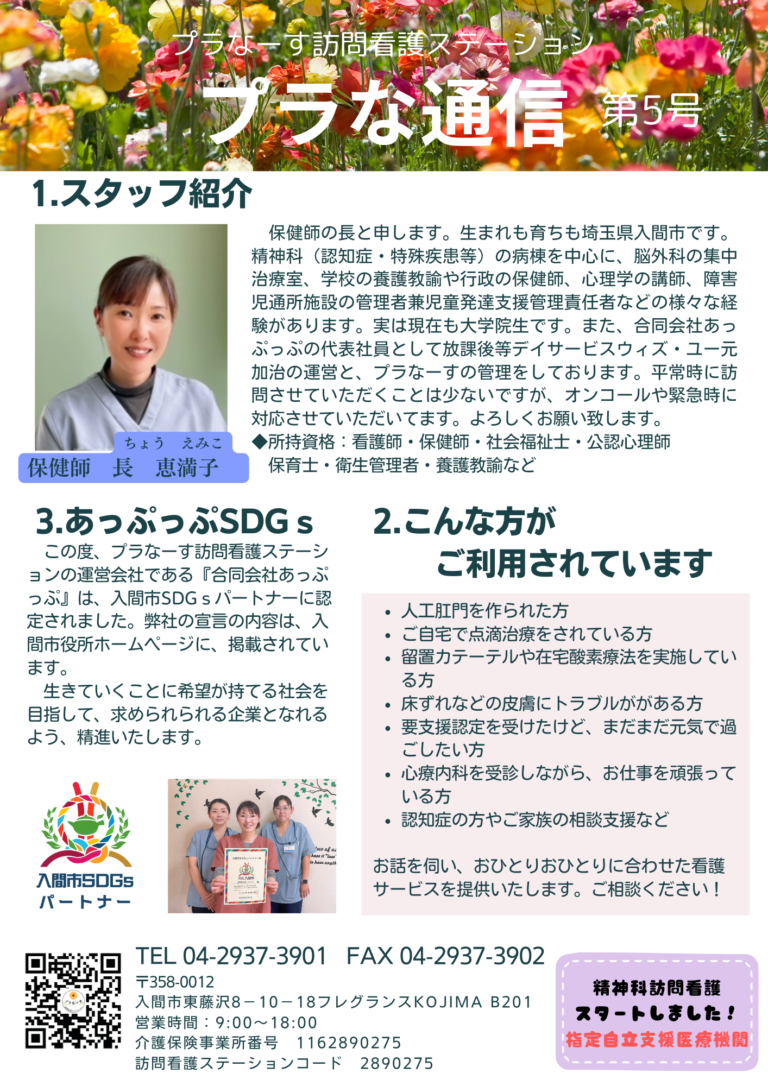 プラなーす訪問看護ステーションでは、私たちの看護を発信するためにプラな通信を発行しています。今回は第 […]